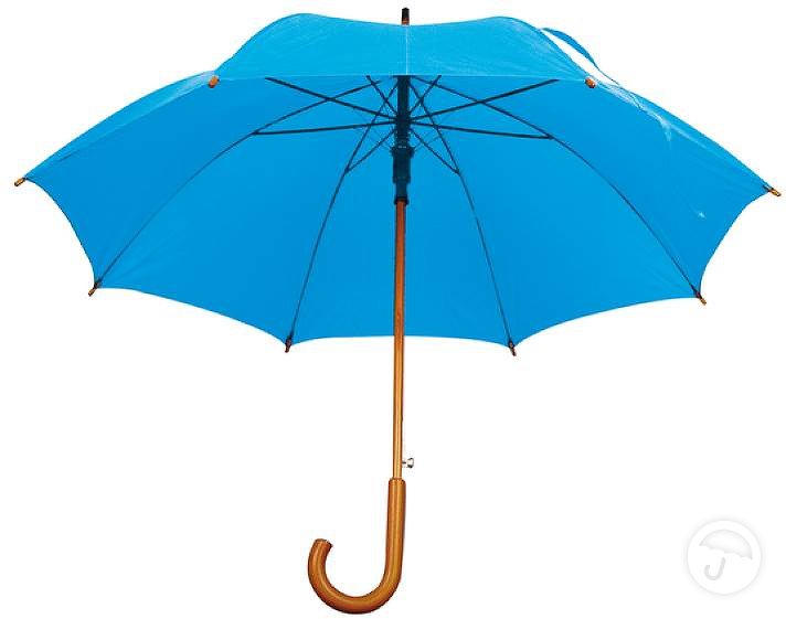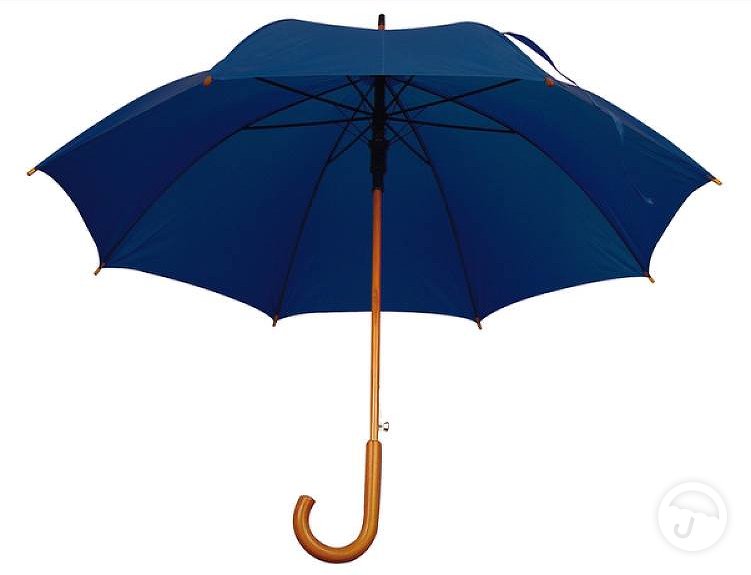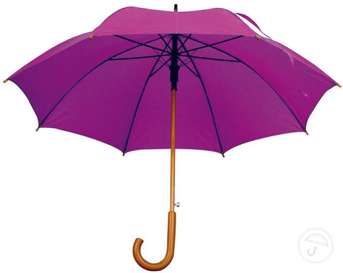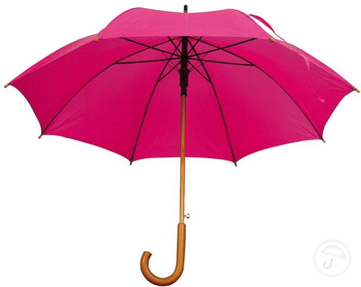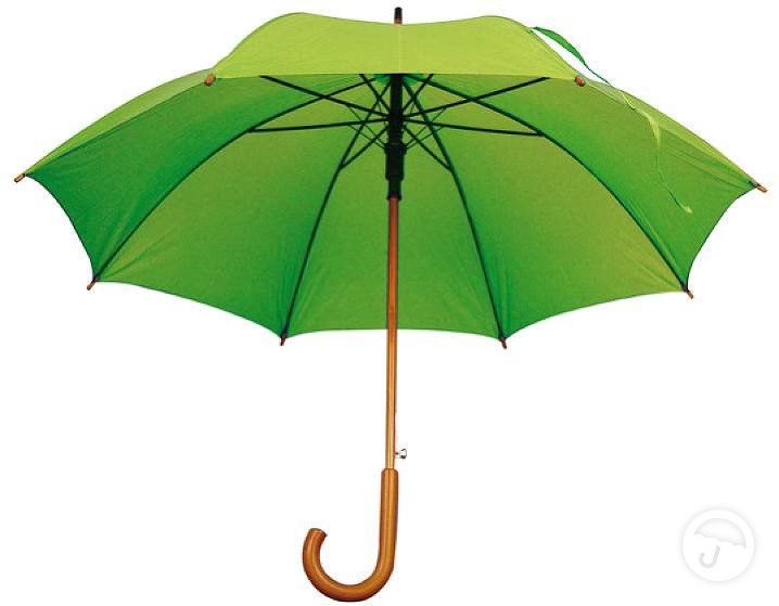 Automatinis skėtis mediniu strypu ir lenkta rankena.