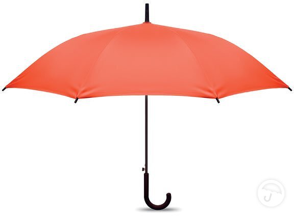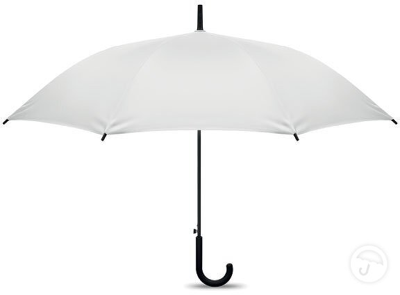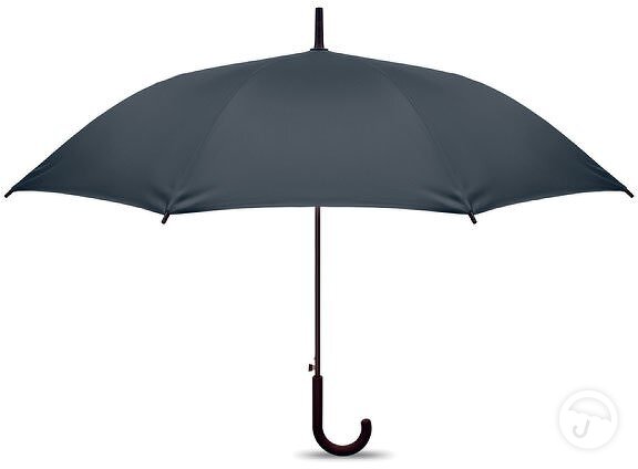 Automatinis skėtis stiklo pluošto karkasu bei lenkta gumuota plastiko rankena.