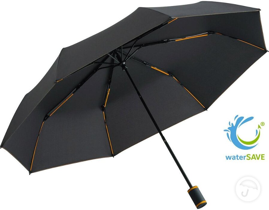 FARE prekinio ženklo sulankstomas mechaniškai išskleidžiamas vėjui atsparus skėtis su spalvotu karkasu bei spalvos detalėmis rankenoje.