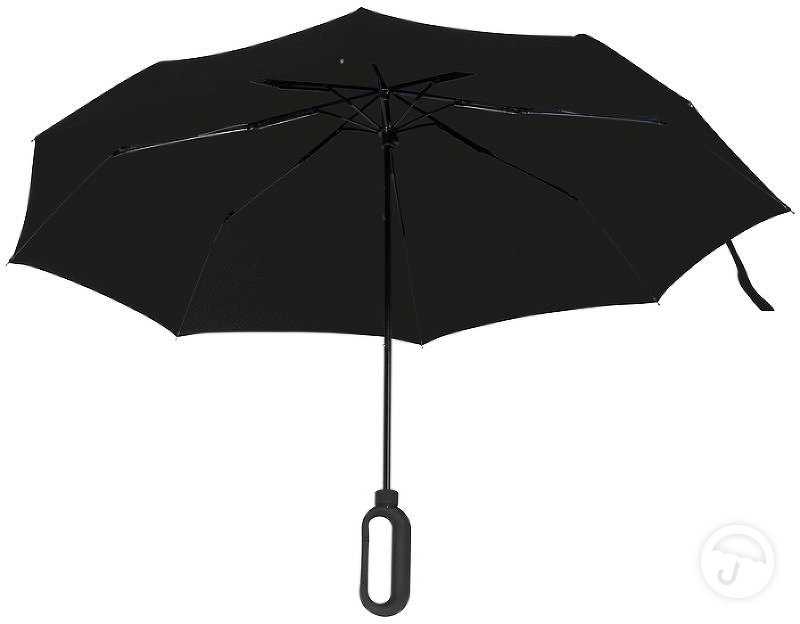 Automatinis sulankstomas skėtis su gumuota karabino formos rankena. patogu prisisegti prie kuprinės.
